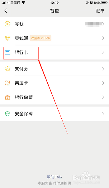 在银行卡页面就可以看到绑定的是哪张银行卡,可以根据显示出的银行卡后四位去查看自己钱包里的银行卡,从而找到完整的银行卡号。