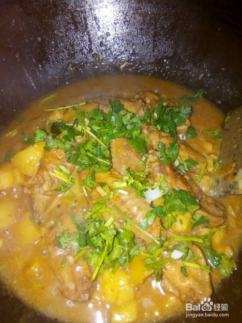 大概十五分钟后加几滴老抽收汁,在加入之前备好的葱蒜香菜,闷一分钟,出锅!