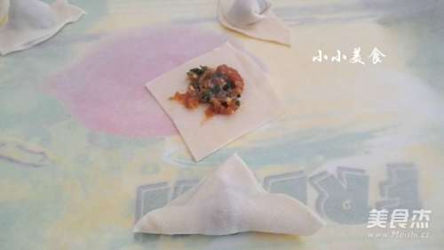 各地方馄饨的包法不同,我包的是草帽式馄饨。(大馅馄饨)。草帽式馄饨包法简单,形状漂亮,易熟好煮!