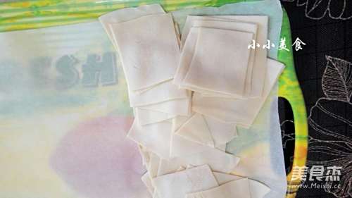 6将面片切成四方形的小面片,馄饨皮就做好了
