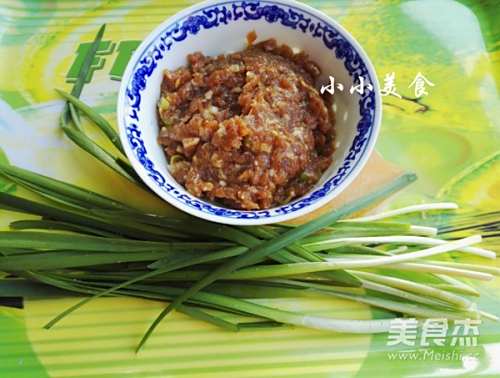 4加入韭菜,将香油淋在韭菜上,这样可以保持韭菜的翠绿,防止韭菜出水