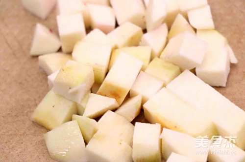 2山药洗净,可以不用去皮,切成小丁或者小块。