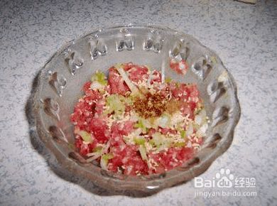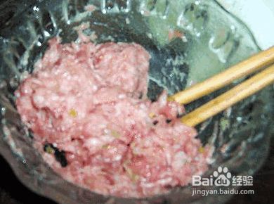 1.肉馅中加入葱姜、盐、鸡精、香油、生抽搅拌均匀。