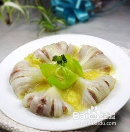 白菜是我们生活中最普通的一个做菜的原料。白菜古时又叫菘,有“菜中之王”的美名。这道佛手白菜,做法非常简单,有荤有素而且还很清淡,很适合减肥人群食用。其特点;形如佛手,馅香可口,白菜脆嫩。是一道老少皆宜的佳肴。
