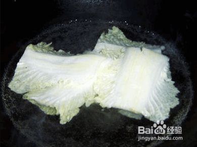 4.锅中烧开水,白菜帮放进去焯至透明。