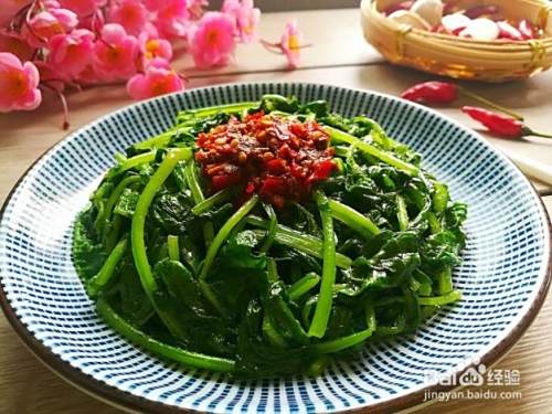 装盘上桌啦,加点辣椒酱,萝卜缨更加入味,如果喜欢吃清淡的口感,就不用加辣椒酱了。