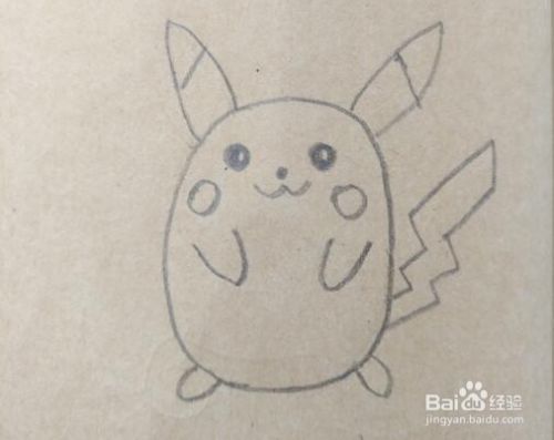 尾巴画好了,我们给皮卡丘的脸上添加上眼睛和嘴巴,两边画出腮红,如图所示。