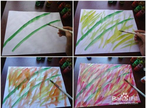 用各种颜色在白纸上随意的涂画,绘制各种你喜欢的图案,一直到将白纸画满,晾干。