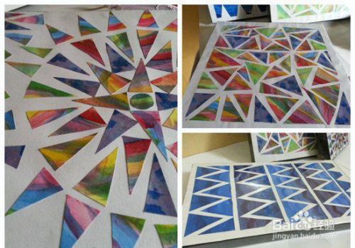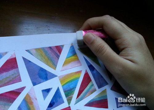 拼贴后晾干,用橡皮擦去铅笔痕迹。