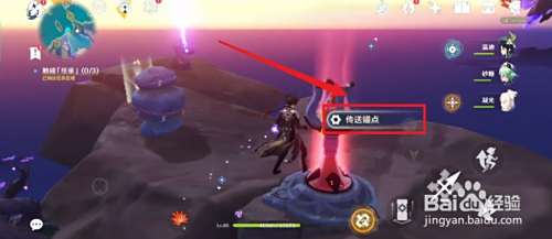 打开地图,选择清籁岛七天神像右侧的传送点,点击传送。