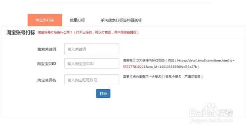 填入需打标的宝贝关键词、宝贝ID以及旺旺号,点击打标,即可完成操作。