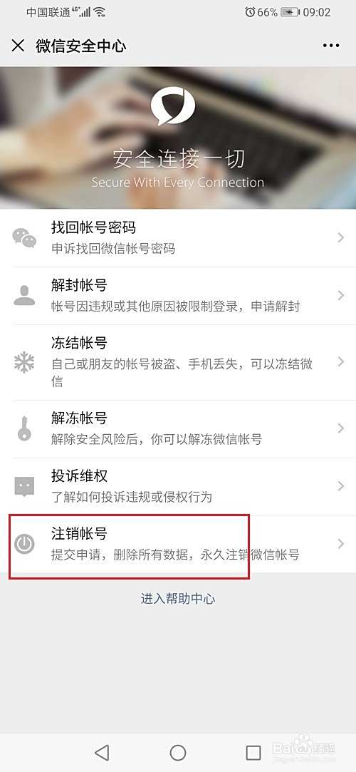 第三步下面来注销一下微信号,点击设置->账号与安全->微信安全中心