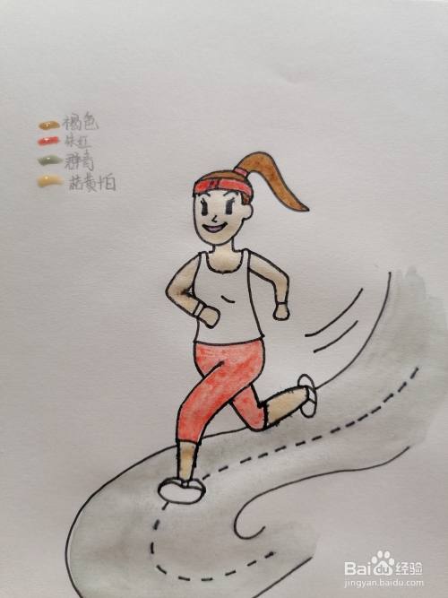 最后用白色+桔黄水彩涂好肤色,跑步的女生就画好啦