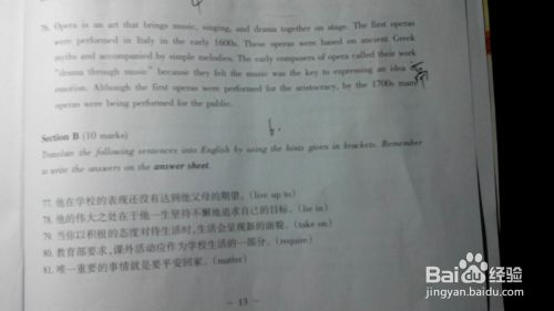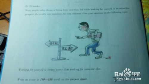 英译汉5分,汉译英10分,难度适中。没什么要说的,基本上属于拿分题。作文两篇,1号10分,2号20分,我考的两次都是图表,图文作文。这作文就最好做两个模板,怎么写图表作文,怎么写图文作文。不要像我两次都忘记怎么写从上表格可以得出什么结论之类的句式。