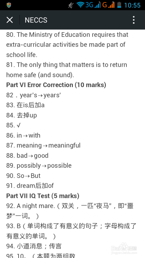 其他的还需要培养做题思维习惯,例如改错题,错误类型就那么几个动词形,名词数,还要注意形和副,借此连词要关注,代词格细领悟,习惯用法要记住,这是高中英语老师总结的,我也就记得这么多了。