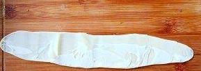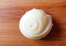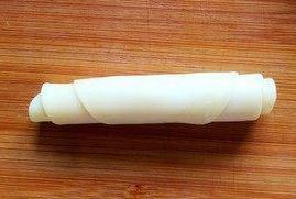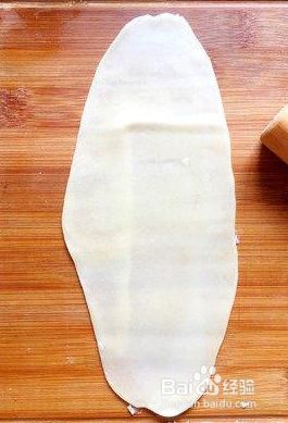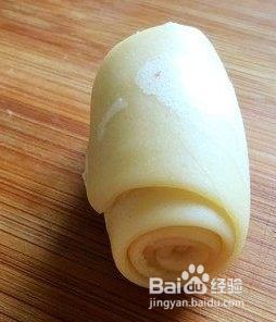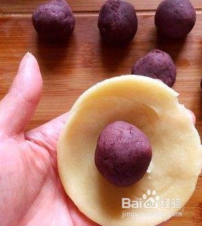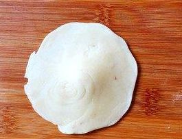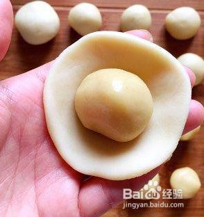把水油皮擀成饺子皮一样把油酥剂子包起来。