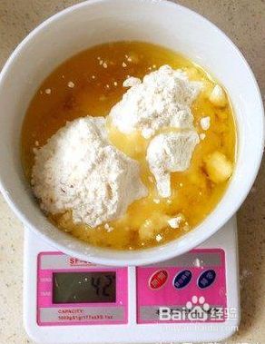 水油皮,110克中筋面粉+30克花生油+30克白砂糖调匀揉成面团表面光滑即可。
