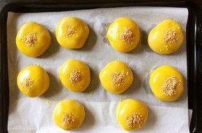 再每一个红豆酥表面薄薄的刷上鸡蛋液。