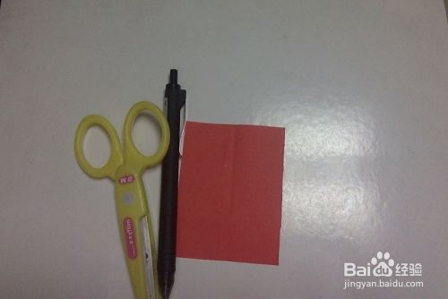 将彩纸对折。