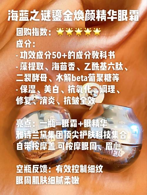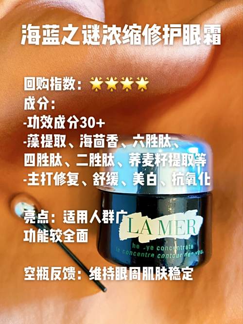 这也是海蓝之谜眼霜甚至是所有贵妇眼霜中最受欢迎的。招牌藻提取、海茴香、六胜肽等最热的抗老成分都有,功能也比较全面。END