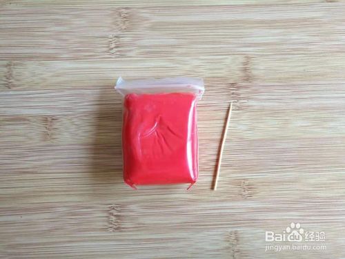 第一步:准备好要制作玫瑰花的红色粘土和一根牙签。