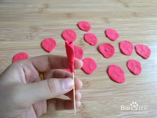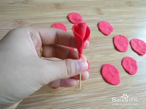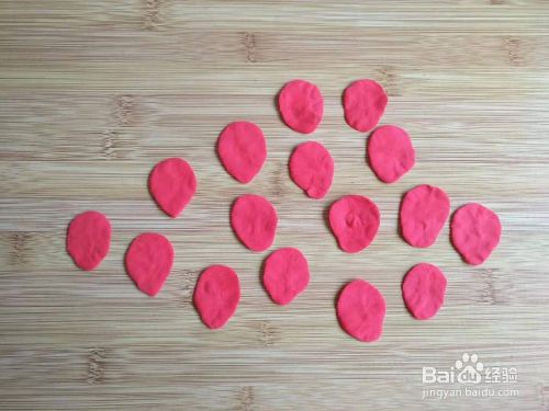 第五步:把水滴状的粘土捏成花瓣的形状。