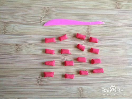 第三步:用工具将红色长条分成差不多大小的16小块。