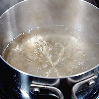 水、玉米糖浆、冰糖倒在一起,放在火上开中火加热。开锅以后转小火。煮之前稍微搅拌一下就行,煮的过程中不需要搅拌。