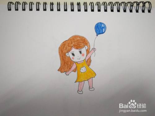 首先绘制小女孩的面部轮廓线,然后绘制身体衣服、头发的轮廓线,接下来绘制小女孩的手臂和腿,再然后绘制五官以及手里拿的气球,最后给简笔画小女孩涂上颜色就可以了。