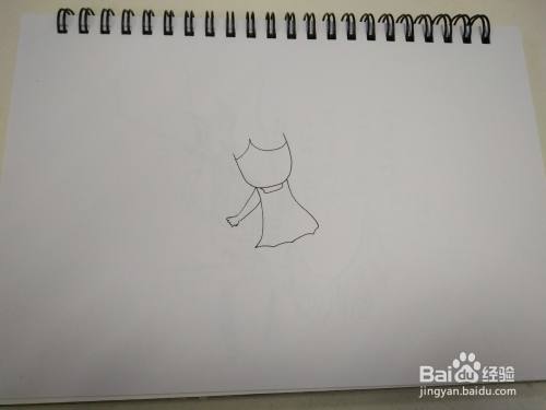 首先绘制小女孩的面部轮廓线,然后绘制衣服轮廓线。