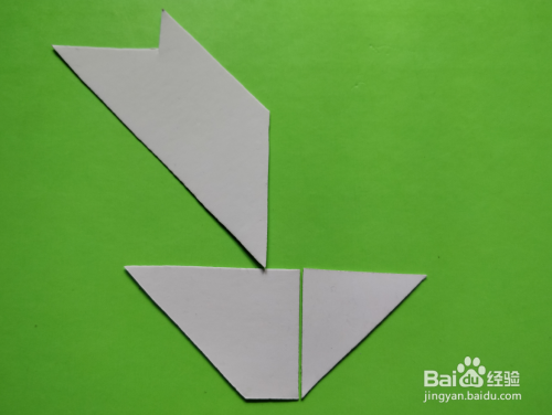 首先放上三角形,直角左上,左侧放上梯形挨着,上端一齐,如图。