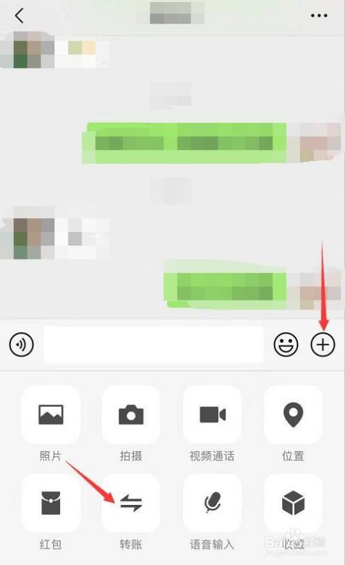 在聊天界面,点击下方的【+】号,然后再点击【转账】。