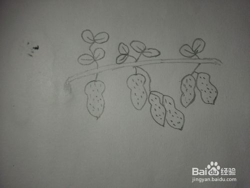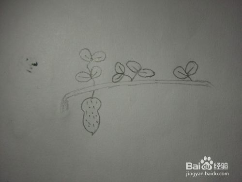 先在白纸上画两条线段作为花生的藤蔓,在藤蔓再画一些线作为须。