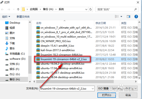 这里我的是Linuxmint-19-Cinnamon-64bit-v2.iso