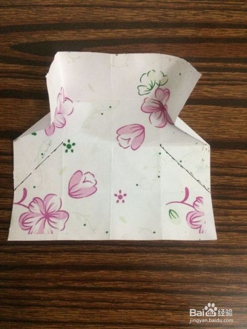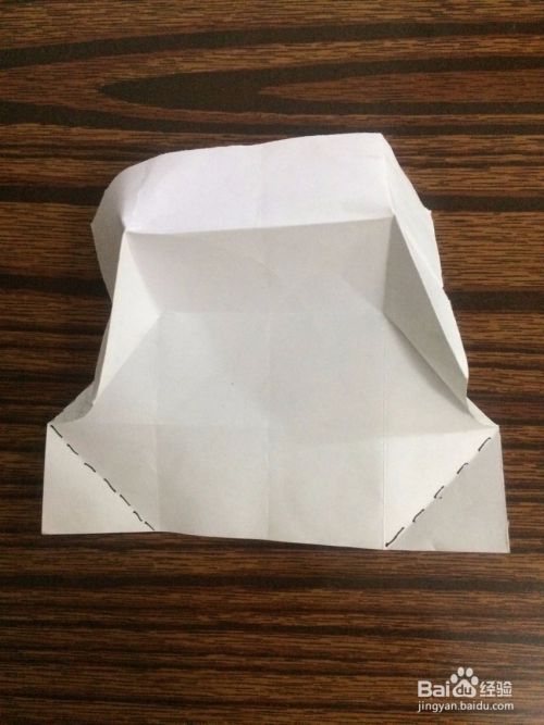 然后翻过来,按照画线向上折叠。再按照折叠线向里面折叠。把左右2角内折叠。