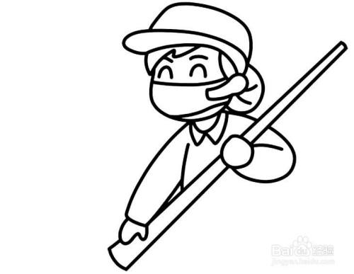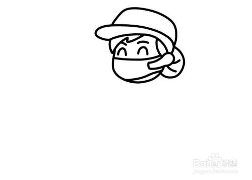 首先画出人物的头部,戴着帽子,戴着口罩。