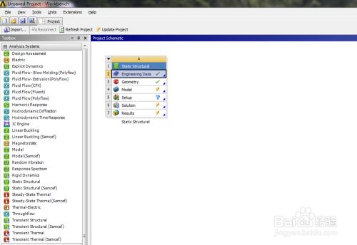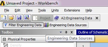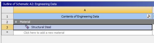 接着在工程A中双击工程数据,Engineering Data,进去后可看到系统默认的材料属性为结构钢。