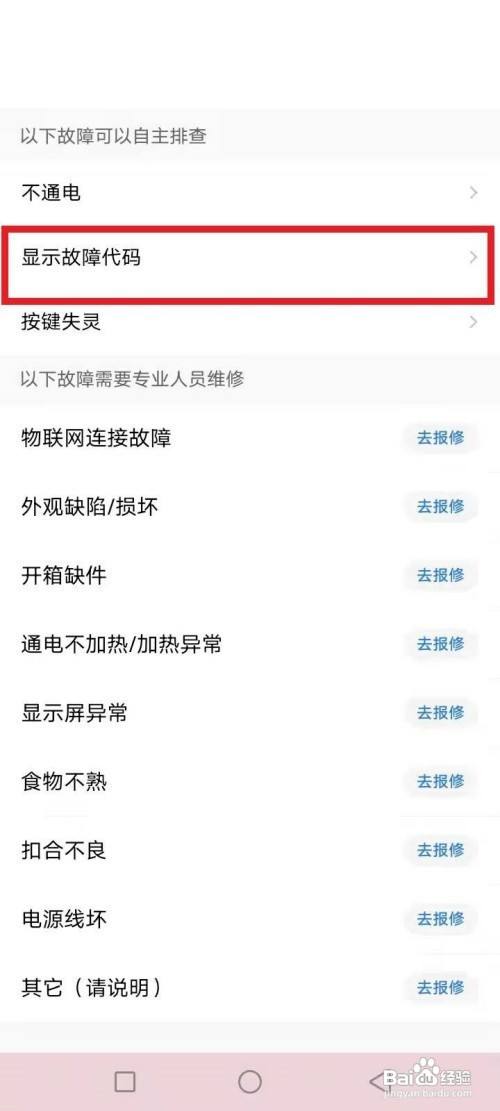 查询故障页面,选择电饭锅相关型号,点击故障显示问题。