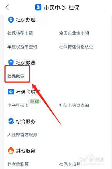 在社保页面点击社保缴纳。