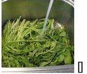 将雪里蕻的黄叶去净,用流水冲洗干净后切成小粒