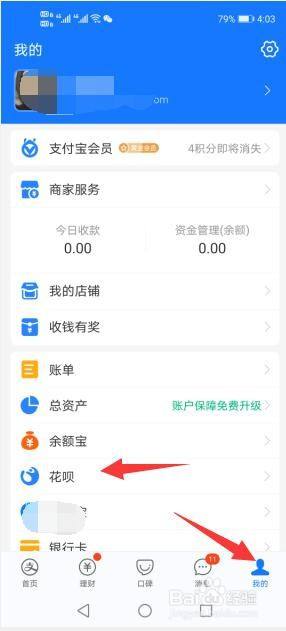 继续回到支付宝“我的”界面,然后点击“花呗”选项。