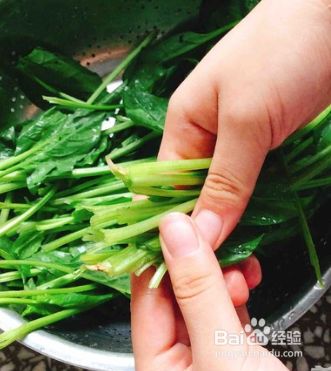 菠菜去梗,洗净。