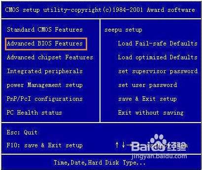 然后我们移动键盘上的光标键,找到“Advanced BIOS Features ”,回车进去。