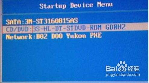 我们开机当屏幕提示按F12选择的时候,按键盘上的F12键,屏幕出现提示,我们用键盘上的方向键,光标移动CDROM栏,回车后,电脑就选择从光驱启动了。