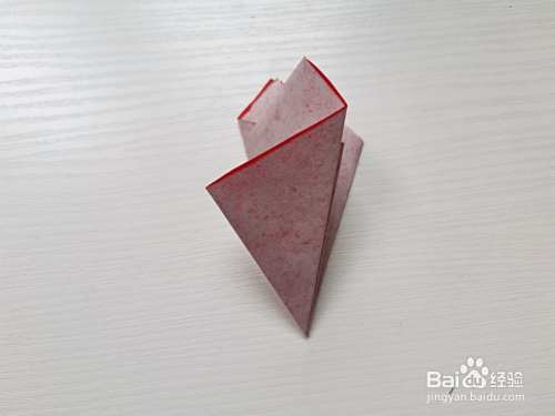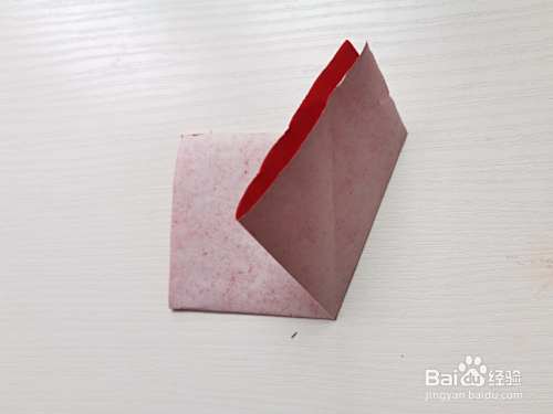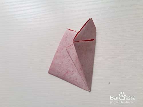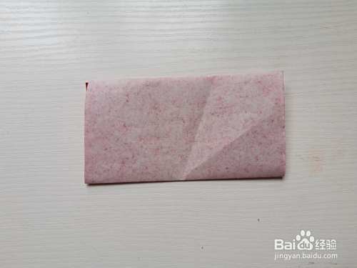 一边向另一边折五分之二后对折,翻面,再将另一边对折。