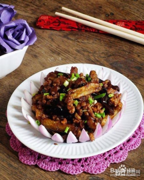 茄子主要食材是茄子,主要烹饪工艺是炒。成品呈黄褐色或者棕褐色,鲜嫩甘美,酱香浓郁,咸甜适口,略带酸味,肉质松软,风味独特。吃茄子建议不要去皮,它的价值就在皮里面,茄子皮里面含有维生素B,维生素B和维生素C是一对很好的搭档,我们摄入了充足的维C,这个维C的代谢过程中是需要维生素B的支持的。茄子具有保护心血管、抗坏血酸,防治胃癌,抗衰老的作用。