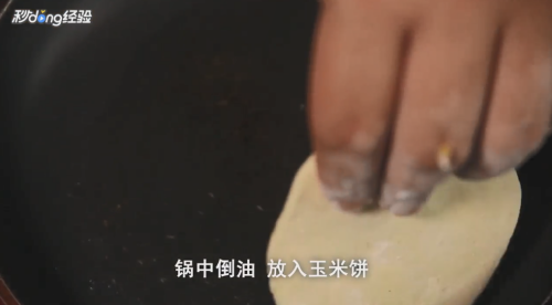 锅中倒油,放入玉米饼,煎至两面金黄即可。