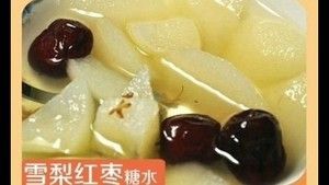 雪梨红枣糖水(●°u°●) 」●雪梨去皮切块,红枣洗净备用●汤锅里加水烧开,放入雪梨、红枣●拿一颗冰糖放入锅中一起煮●大火将水烧开转小火炖煮十分钟左右即可