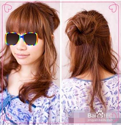 长发扎成半扎造型的丸子头是2019年里非常流行的一款扎发,这样的造型款式既可让一半的发丝自然的披散在肩上,又可将另一半的发丝扎到高高的头顶上,这样就成了典型的半扎丸子头,女生长发的半扎丸子头最凸显减龄气息,而且还有着时髦的感觉。