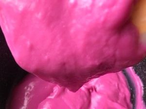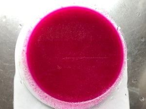 火龙果切块过筛,160克的果肉榨出了65克的火龙果汁